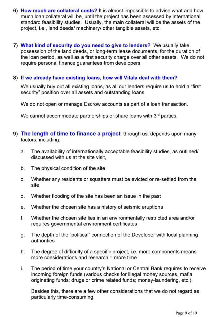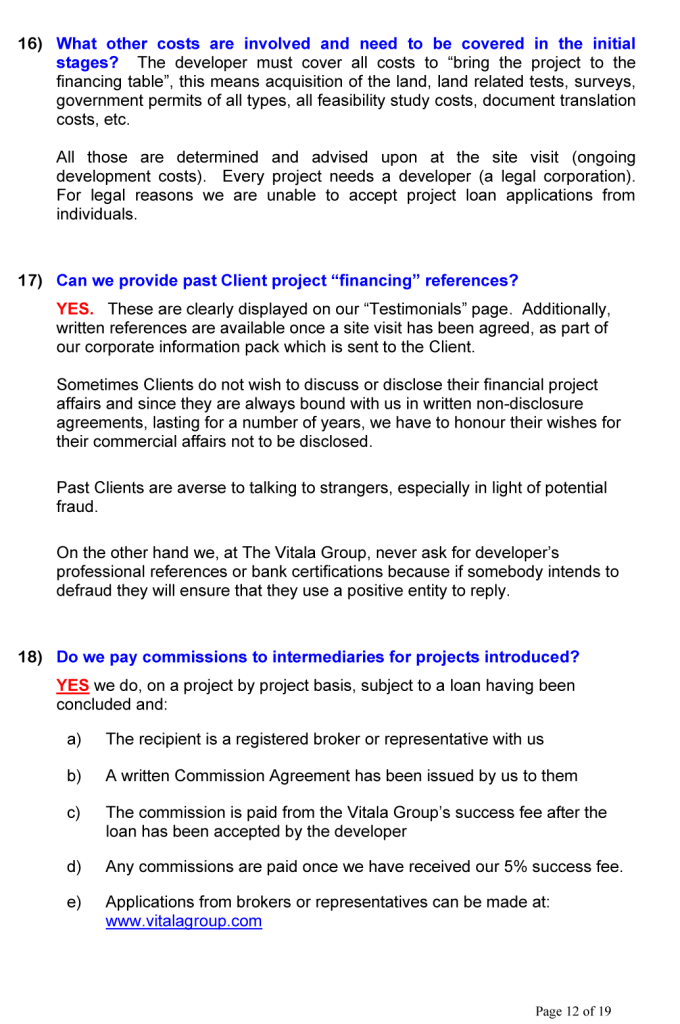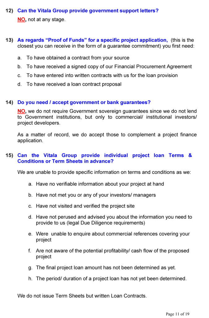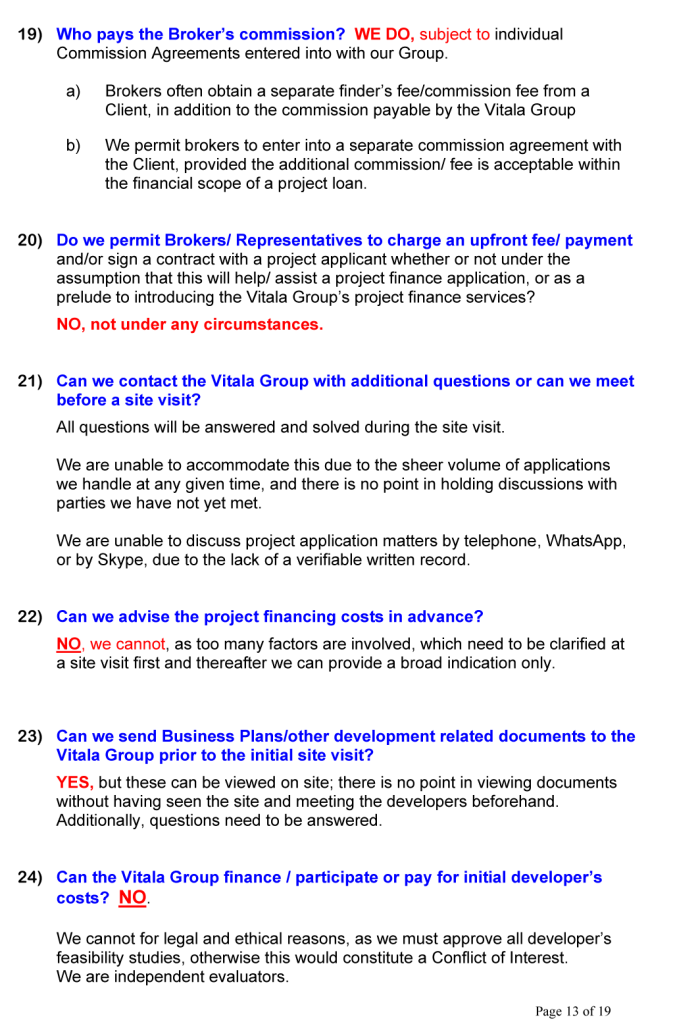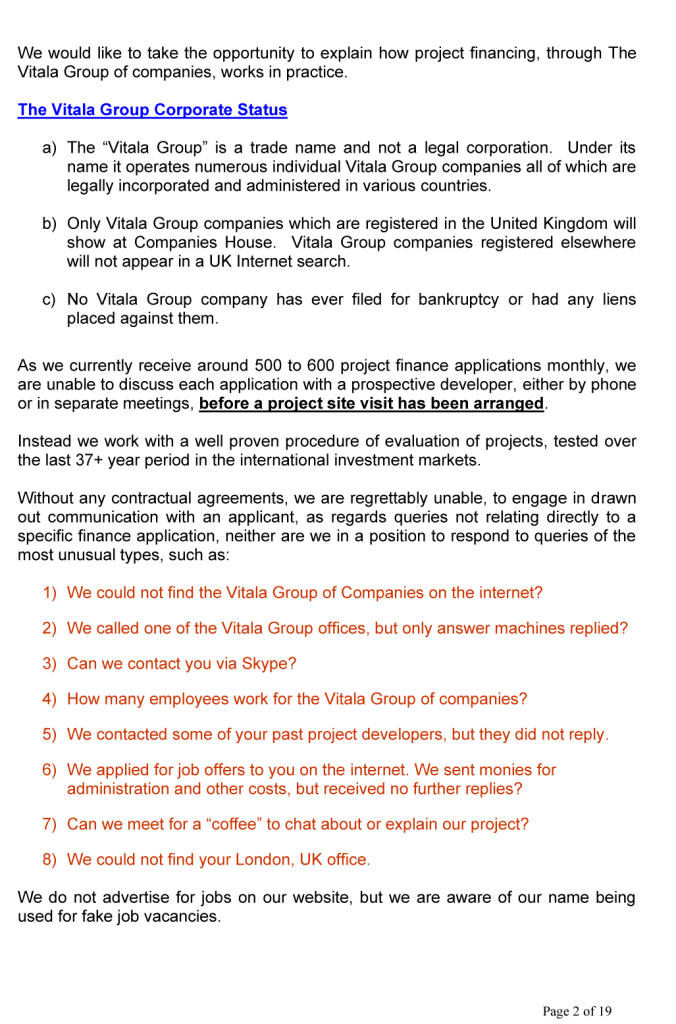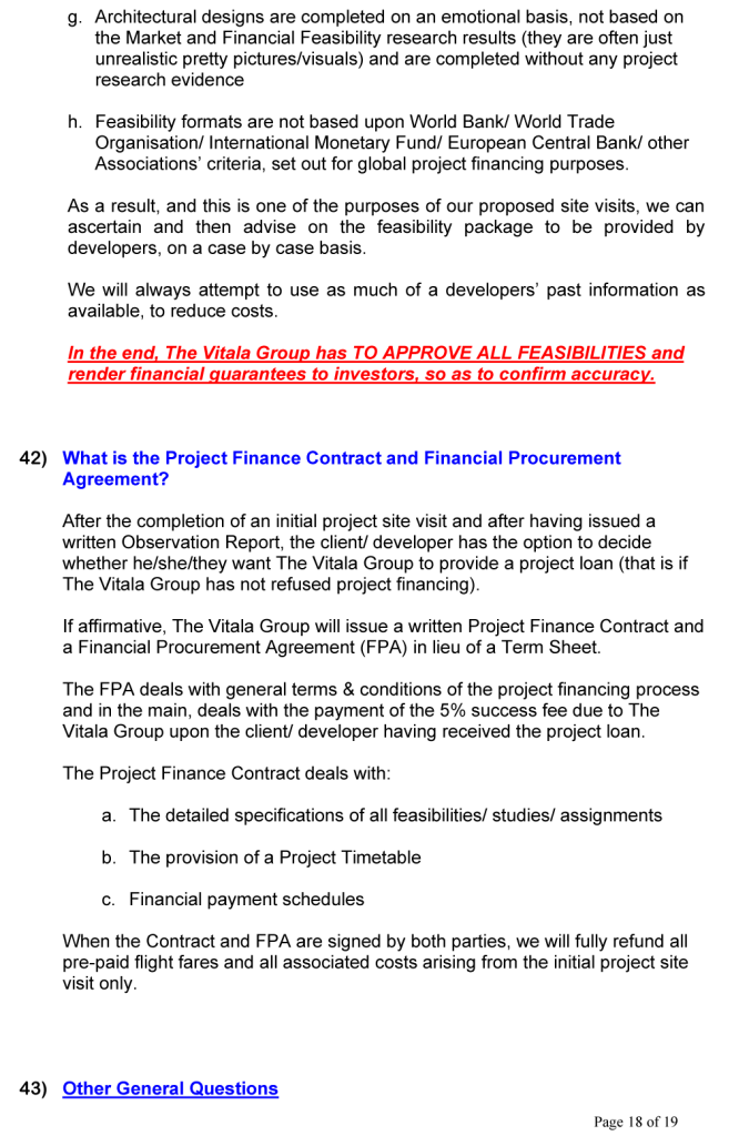 BUSINESS OPPORTUNITIES & PROJECT FINANCE Stan Etkind is a representative of the Vitala Group regarding commercial cooperation. For more information on the Vitala Group Projects, click on the button below. Schedule of International Project Experience Download the Project Finance Application Form and return the completed form to us. Project Finance Application Form GLOBAL PROJECT FINANCE - FREQUENTLY ASKED QUESTIONS (FAQ) WE OFFER A DIRECT PERSONAL SERVICE WITH LIVE INTERACTION.WE ARE HONEST AND ETHICAL.PLEASE NOTE: SERIOUS BUYER’S ENQUIRIES ONLY.WE DO NOT ASSIST UNQUALIFIED BUYERS, SELLERS, TIME WASTERS AND BAD ACTORS.